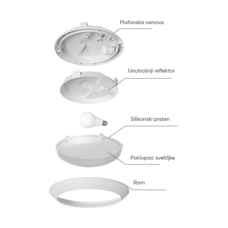 Plafonjera koristi standardnu E27 sijalicu snage do 23 W, što olakšava zamenu i izbor jačine i boje svetla prema potrebama prostora