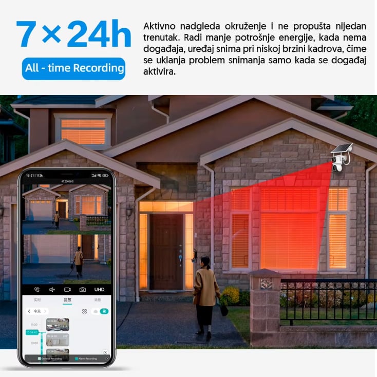 Solarni panel sa baterijom velikog kapaciteta obezbeđuje stabilno, samostalno napajanje bez potrebe za kablovima