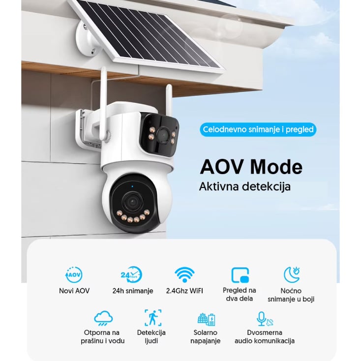 IP Wi-Fi solarna kamera sa dva objektiva, AOV 4MP