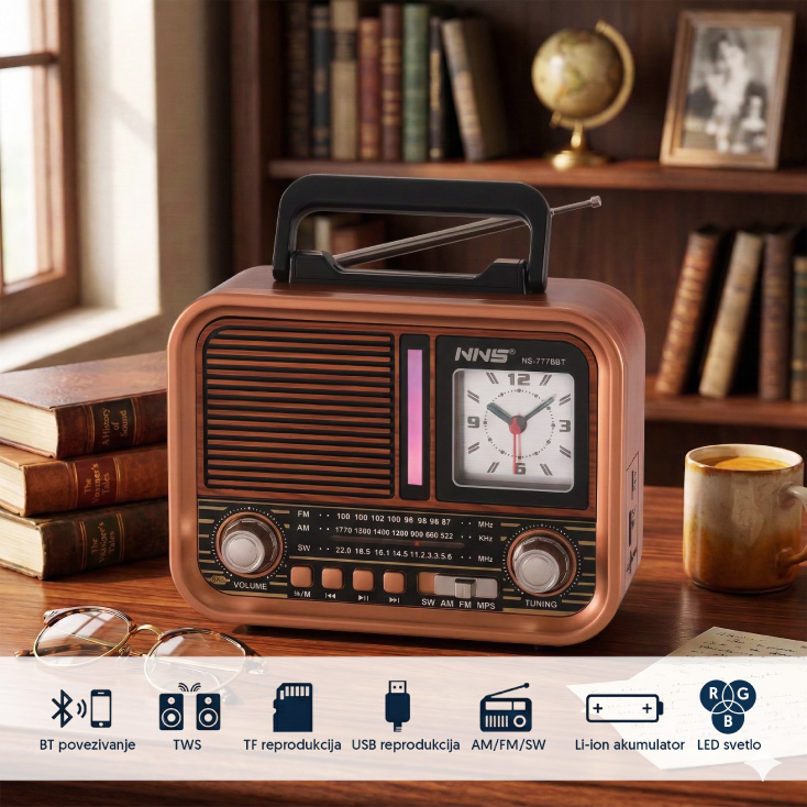 Prenosni retro RGB Bluetooth radio + sat 7778BT/B