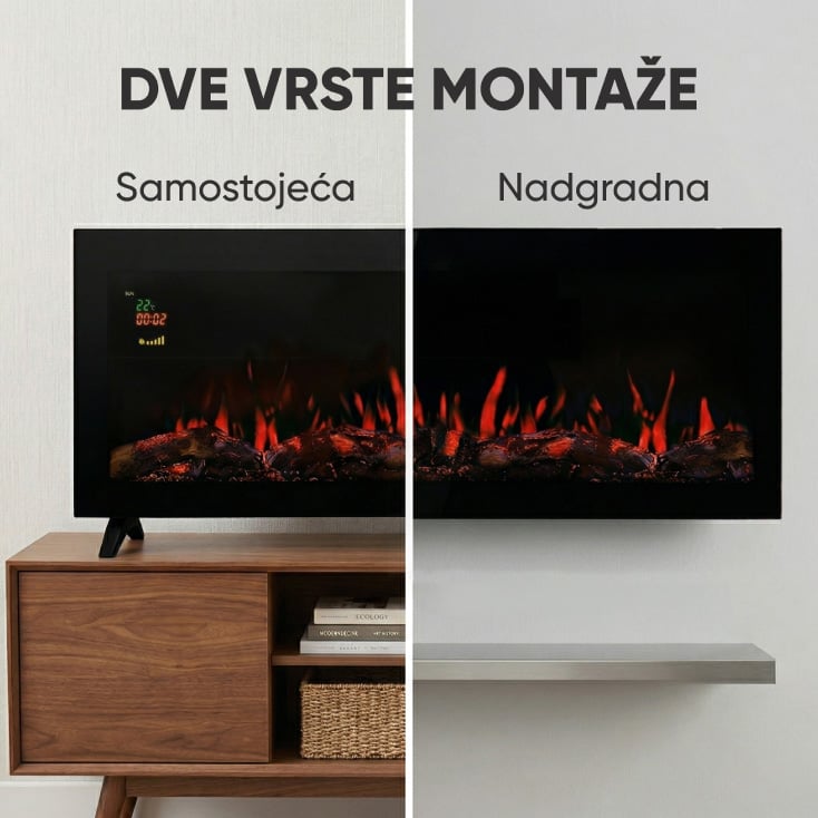 Može da se postavi na zid za moderan i uredan izgled, ali i kao samostojeći kamin ako više odgovara rasporedu nameštaja i prostoru u kojem će se koristiti
