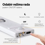 Ova punjiva LED lampa sa senzorom pokreta je savršeno rešenje za osvetljavanje ormara, hodnika, kuhinjskih elemenata ili bilo kog dela doma gde vam treba diskretno, automatsko svetlo
