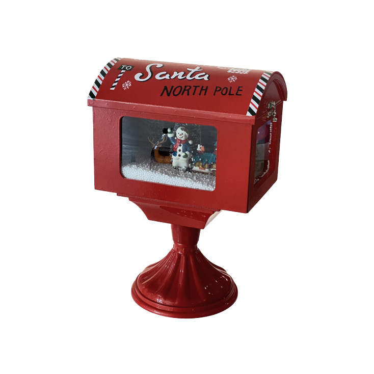 Poseduje osvetljenje, prijatnu prazničnu muziku koja se može isključiti i imitira padanje snega