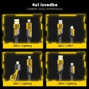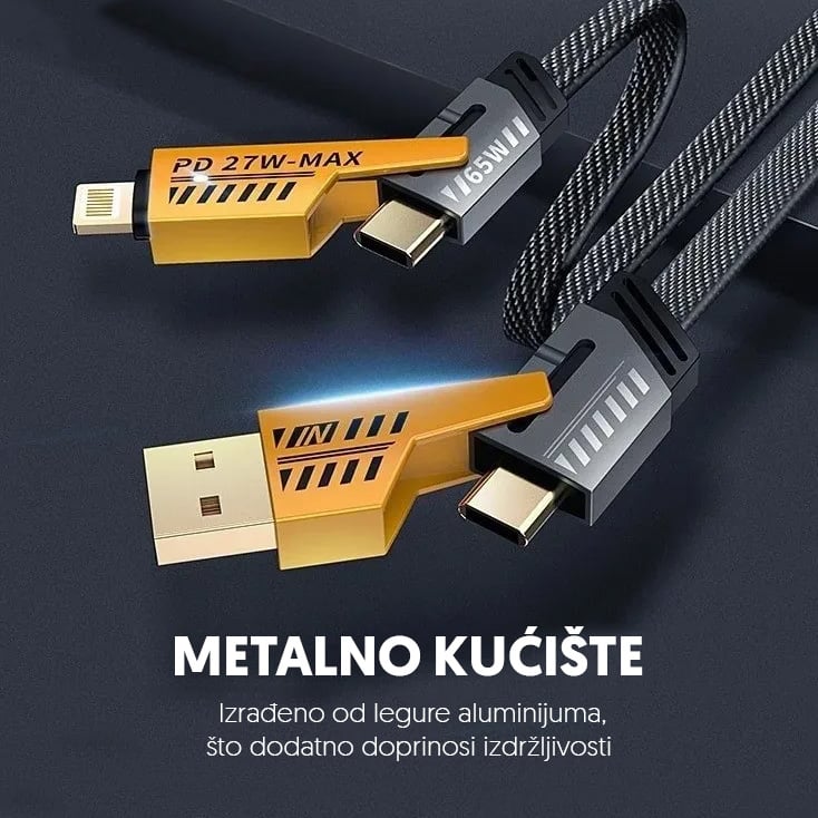 USB kabel 4u1 za brzo punjenje i prenos podataka je praktično rešenje za sve koji koriste više uređaja i žele jedan kabel koji pokriva sve potrebe