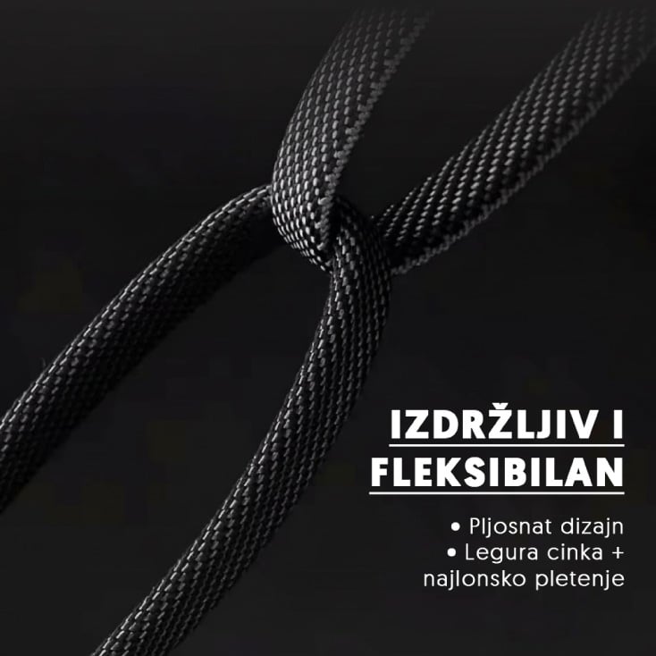 Spoljašnji sloj od pletenog najlona visoke gustine i pljosnata izvedba čine kabel otpornim na habanje, savijanje i zapetljavanje