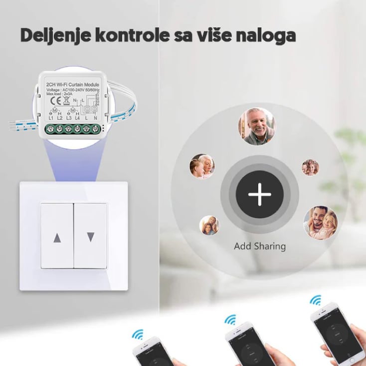 Smart Wi-Fi modul za dve roletne WFM-RL02 ti daje kontrolu nad dve roletne putem aplikacije sa telefona
